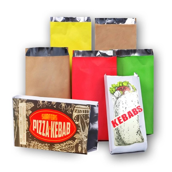 Foil lined gusset bags are popular with restaurants, cafes, bakeries and takeaway outlets,Lined with aluminum foil,it’s an excellent choice for preventing leaks and moisture,and suitable for keeping hot or greasy food,such as kebabs, souvlaki, wings and roast chicken. The bags is lightweight and convenient to transport. so your customers can enjoy the food on the go.